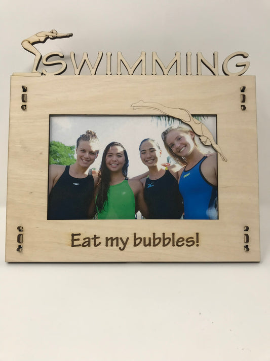 Personalized swimming photo frame Laser cut Baltic Birch Wood